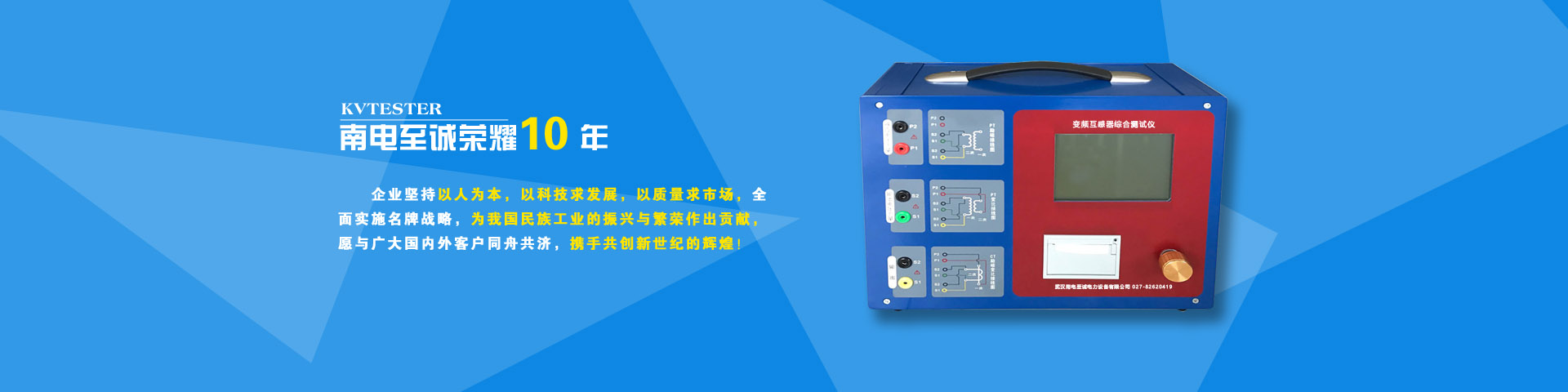 武漢南電至誠電力設(shè)備有限公司是一家專業(yè)從事電力、電氣測試設(shè)備,集研發(fā)、生產(chǎn)、經(jīng)營于一體的企業(yè)。公司擁有雄厚的技術(shù)人才,并通過與武漢各大院校、科研院所的廣泛合作,向全國電力行業(yè)提供大量的優(yōu)質(zhì)產(chǎn)品與完善的售后服務(wù)?! 」疽援a(chǎn)品質(zhì)量為企業(yè)的生命。以市場為導(dǎo)向,以滿足用戶為主題,以優(yōu)質(zhì)的服務(wù),合理的價格,深得廣大用戶贊譽。公司的產(chǎn)品研發(fā)團隊由多年從事電力產(chǎn)品開發(fā)的研發(fā)工程師組成,產(chǎn)品開發(fā)以相關(guān)行業(yè)標準和規(guī)程為依據(jù),充分利用微電腦技術(shù),實現(xiàn)產(chǎn)品的高智能化,使現(xiàn)場工作更輕松,更方便,更簡單。同時被經(jīng)貿(mào)委列為城鄉(xiāng)電網(wǎng)建設(shè)和改造推薦企業(yè),企業(yè)產(chǎn)品已在我國電力、煤礦、石油、化工、冶金、建筑、鐵路、通信、國防等部門得到廣泛的應(yīng)用。研發(fā)的高電壓試驗設(shè)備和電氣設(shè)備測試儀器受到了用戶的青睞。公司主導(dǎo)產(chǎn)品:微機繼電保護測試系統(tǒng)、串聯(lián)諧振試驗成套裝置、交直流輕型高壓試驗變壓器、變壓器容量及空載負載特性測試儀、變壓器變比組別測試儀、接地線成阻直流電阻測試儀、回路電阻測試儀、漏電保護測試儀、直流高壓發(fā)生器、高壓開關(guān)動特性測試儀、氧化鋅避雷器測試儀、三倍頻耐壓裝置、大電流發(fā)生器、多功能電能表現(xiàn)場校驗儀、互感器檢測裝置等產(chǎn)品,高智能、自動化、體積小、重量輕、結(jié)構(gòu)合理、功能完備為特點,通過部門的檢測和鑒定,是電網(wǎng)建設(shè)和改造的推薦產(chǎn)品。 企業(yè)堅持以人為本,以科技求發(fā)展,以質(zhì)量求市場,全面實施戰(zhàn)略,為我國民族工業(yè)的振興與繁榮做出貢獻,愿與廣大國內(nèi)外客戶同舟共濟,協(xié)手共創(chuàng)新世紀的輝煌!歡迎各界新老朋友前來參觀指導(dǎo)、洽談業(yè)務(wù)!